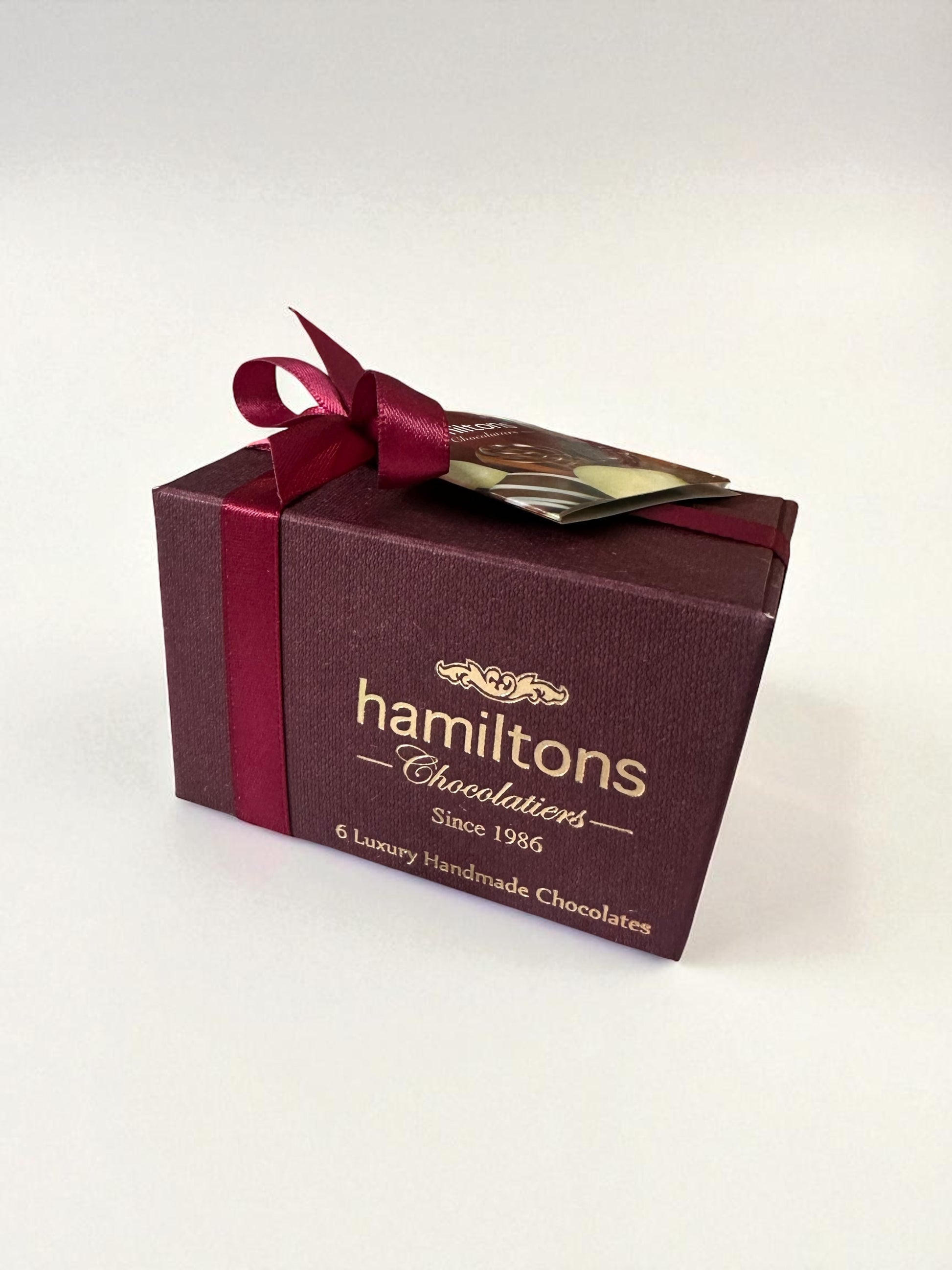 Hamiltons Box of Six Handmade Chocolates, each piece is carefully crafted using premium ingredients, offering a refined balance of flavour and texture. Perfect for connoisseurs seeking a sophisticated chocolate experience, this selection highlights expert techniques that elevate handmade confectionery to an art form. Ideal for gifting or personal enjoyment, these chocolates deliver a rich, memorable taste in every bite.