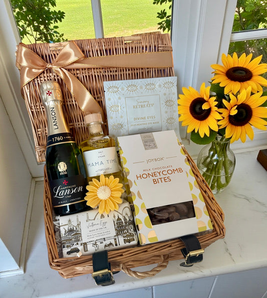 Celebrate the special mum in your life with this thoughtful treats hamper. Featuring a charming floral mug perfect for her favourite hot drink, indulgent hot chocolate, and a dedicated mum chocolate box, it's a collection designed to delight. Pamper her with luxuriously soft socks, soothing bath infusion, rejuvenating body recovery salts, nourishing hand cream, and a delicate daisy candle that brings warmth to any room. Each item has been selected to provide comfort, relaxation, and a touch of everyday luxury—the ideal way to show appreciation for everything she does.